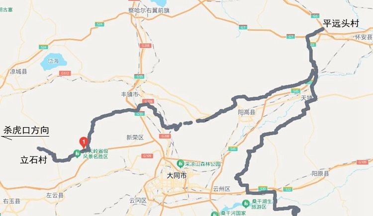 據(jù)相關資料,長城一號旅游公路的大同段北線,東起天鎮(zhèn)縣新平堡鎮(zhèn)平遠頭村,西至左云縣三屯鄉(xiāng)立石村。但實際上,當我來到立石村時,往西還是旅游公路,能開到殺虎口。